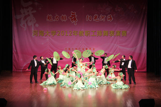10月12日下午,由校工会组织的“活力排舞,阳光河海”成人漫 教职工排舞比赛在江宁校区文体馆隆重举行,全校共有16支成人漫 代表队参赛。成人漫朱宏亮书记和王永芝副书记亲自参加并带领成人漫 热爱舞蹈健身运动的教工组建了由8名男老师和16名女老师组成的24人队伍,邀请专业舞蹈老师指导,历经1个多月的紧张训练,代表成人漫 参赛。尽管高手云集,但成人漫代表队女士绿色荷叶落地长裙和男士黑色燕尾长装及精彩出场仍惊艳全场。凭借着整齐的舞姿、别致的道具和独具匠心的队形变换,成人漫的表演屡屡赢得现场观众及评委的阵阵掌声,最终从众多参赛队伍中脱颖而出获得一等奖,为成人漫 争得了荣誉。