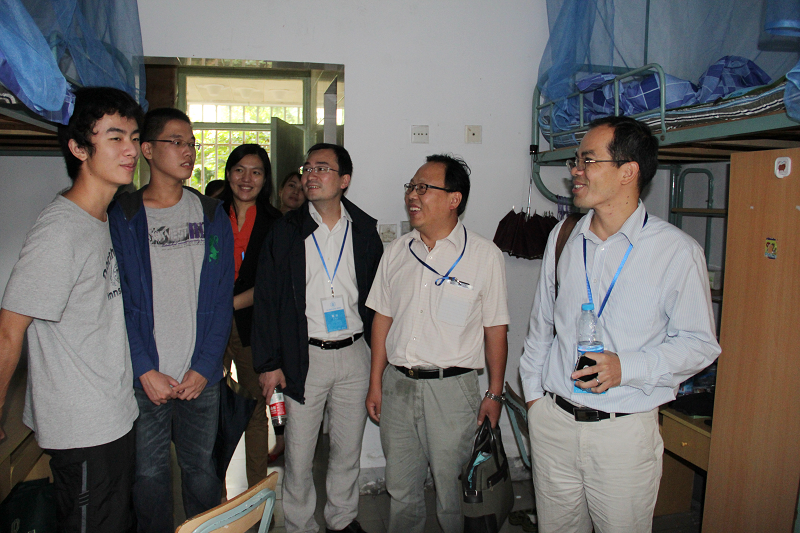 郑金海院长、院党委胡忠华书记、陈达副院长冒雨前往学生宿舍看望13级新生,并与同学们亲切交谈。领导们细心了解、全面询问学生的家庭、食宿,以及存在的困难并给出指导意见,并鼓励新生尽快融入到大学的学习氛围中来。之后,领导们还前往成人漫搭建的港航院大一新生接待处视察工作,并对成人漫此次的新生接待工作表示赞赏。