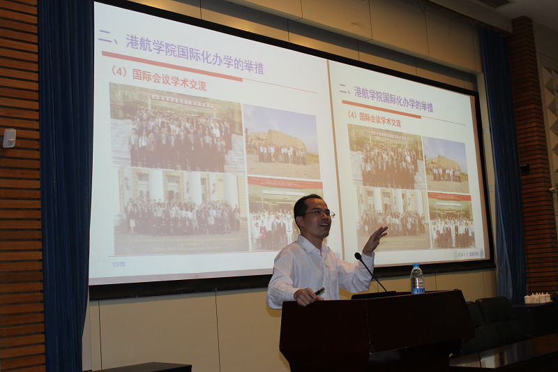 在讲座中,郑教授从培养大学生国际化视野的意义着手,着重介绍了港航院国际化办学的举措,他用自己丰富的海外经历和生动有趣的故事,让大一新生在轻松获得相应信息的同时,开拓了国际化的视野。