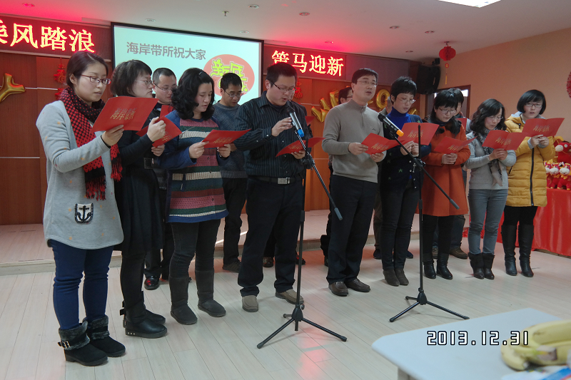 12月31日下午,严恺馆702欢声笑语,大家期待的2014年迎新年联欢会拉开帷幕。今年的会场布置喜气洋洋、温暖如春,联欢会的基调为“红”,象征着喜庆、热闹、好运,主题是乘风踏浪、策马迎新。乘风踏浪紧扣成人漫 工作主题,策马迎新寓意新的一年成人漫 工作蒸蒸日上。