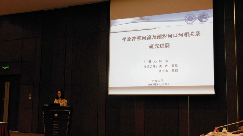 在“河口治理与保护”第五分会场,陆倩做了题为“平原冲积河流及潮汐河口河相关系研究进展”的报告,并介绍了团队近期承担的江苏闸下港道淤积机理与健康运行研究项目的主要进展。陆倩、龚政等撰写的论文《平原冲积河流及潮汐河口河相关系研究进展》获得了中国水利学会2013年学术年会优秀论文,尹倩瑜、龚政等撰写的论文《长江口北支河段潮汐不对称性分析》也被推荐在《人民长江》发表。