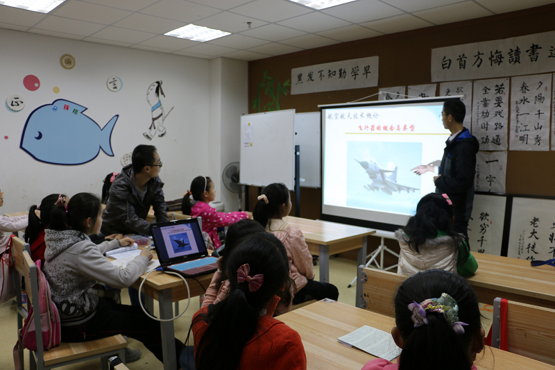 为了进一步加强奉献精神和团队意识, 4月12日,2012级青马工程第三组成员来到港航院志愿服务基地“宝船社区,希望来吧”开展实践活动,为那里的小朋友讲授关于海洋和飞行器的相关知识。
