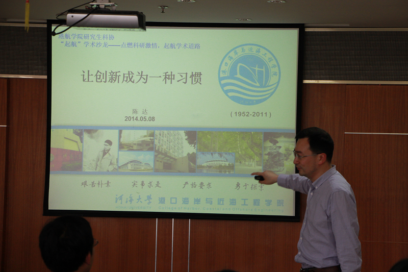 2014年5月8日,成人漫 港口海岸及近海工程成人漫 院科协与IAHR成人漫 学生分会共同承办的以“点燃科研激情,启航学术道路”为主题的“启航学术沙龙”活动在严恺馆702隆重举行。成人漫 研究生、本科生及校内水文、土木等专业的学术爱好者踊跃参与了本次活动。成人漫 陈达教授、陈永平教授及优秀硕、博士生代表杜静同学、于立婷同学等做为嘉宾出席了本次活动。