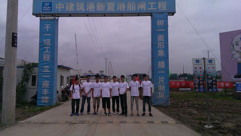 7月7日,小组成员抵达航道整治工程的重点工程—新夏港船闸工程施工地点。中建筑港集团有限公司项目经理部潘梦阳经理为实践团安排好各项事宜。队员们先后在研究员的带领下参观了新夏港船闸,了解了新夏港船闸的各项基本指标,在港航院09级学长任道旺试验员的指导下参观了实验室,认识了从施工到检测所需的各种仪器,并初步掌握仪器的原理和功能。7月10日,小组实践最后一天,实践团邀请了港航院99级校友锡澄运河航道整治工程监理方左总监参加访谈工作,对同学们提出了几点期望:学习有自己的特长,要广又要专;就业要能充分调动每一个优势;处世要大胆,与人沟通要积极主动。