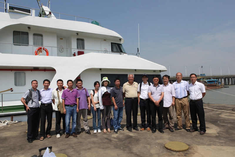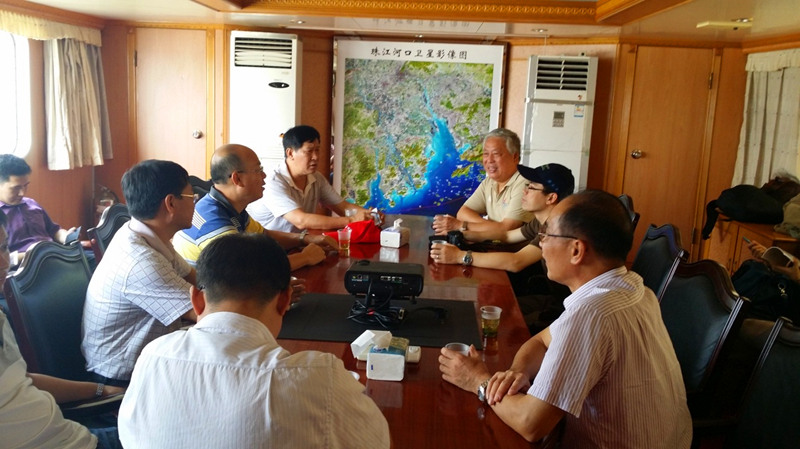 此次珠江三角洲实地科考是近年来成人漫主持的规模最大,空间跨度最广的流域区域科学考察活动,科考从西江干流珠海、澳门上行,过三角洲一级分流节点思贤滘,经北江干流下行、过顺德水道、李家沙水道后,进入狮子洋、伶仃洋,最后由洪湾水道返回珠江西江流域管理局,科考全程历时3天,总路程400多公里(图2)。科考期间主要统计记录了流域堤防险工险段、涉河建设项目以及岸线滩涂利用保护等情况资料,现场重点观测了影响西北江水沙分配的思贤滘汊口的分流过程,勒流、焦门等水道的复杂流况;掌握了南沙港港口水深维持较好的“弱流环境”;收集了东四口门滩涂围垦资料;参观了“港珠澳大桥”桥梁施工作业的情况(图3)。科考后,水利部公益性课题组成员就此次科考进行总结,并对课题的后期工作进行讨论与部署(图4)。