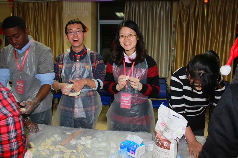 特地为留学生准备了一道重头戏——教留学生们包饺子。陈院长现身说法,亲自示范了如何擀面皮、包饺子。成人漫