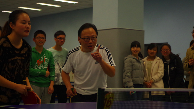 在由师生组成的比赛队伍与观众们激动的欢呼声与鼓劲声中,胡忠华书记惊险地以两分优势帮助小组赢得胜利,但这只是全部精彩比赛的缩影。2015年4月10日,在江宁校区体育馆内举办了港航院师生乒乓球赛。参加本次活动的有:港航院院长郑金海、港航院党委书记胡忠华、港航院党委副书记姜海霞、港航院乒乓球队王义刚、李宇、丁坚、杨志明、徐保华、马庚华、储鏖老师,此外还有组织本次活动的何春林、王玲、季超老师,以及大一大二的热爱乒乓球运动的同学们。本次活动,还特设竞猜抽奖环节,幸运观众将会得到中国大学生足球联赛开幕式的入场券。