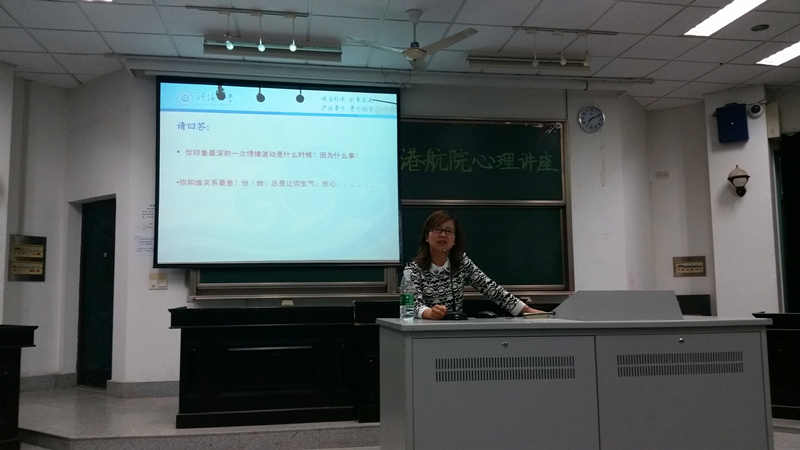 5月21日下午18时30分,港航院14级全体同学在高b101参加了此次心理健康讲座及心理健康月活动展示,讲座的主讲人是我校心理健康研究中心的刘取芝老师,参加此次活动的还有校国际合作处的张继生教授、辅导员季超老师。