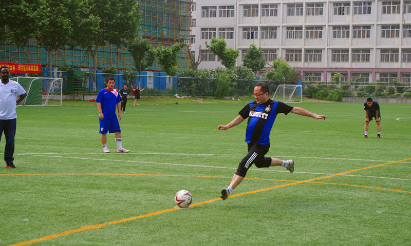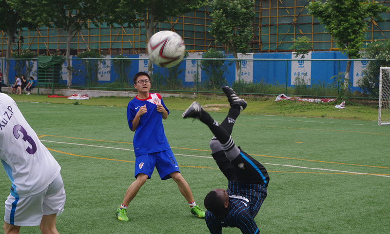 一声哨响,比赛下半场开始,港航院研究生辅导员林凡老师亲自上阵,带领球队比赛。但通过切磋与交流,本科生联队开始逐渐适应场上局势,踢的渐有章法,以对面前锋队员的速度不快为突破口,多次抢断并组织进攻,足球几次越过中场线,向对方的球门进发。然而“年轻的樵夫还是不敌年迈的猎人”,研究生队在林凡老师的带领下,沉着冷静、随机应变,在下半场不仅获得一次点球机会,而且在比赛进行到23分钟又踢入一粒进球。之后,双方你来我往,最终无人可以攻破球门,本场比赛也在裁判的哨声中以5:0的成绩结束。