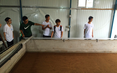 海岸动力地貌科学教研中心参观实验室。研究生学长学姐为队员们详细地讲解了潮滩的演变过程。随后,在龚政副院长的带领下,大家学习了潮滩的物理结构模型。之后,队员们进入图书馆海洋资料陈列室,查阅了大量有关潮滩的资料,并且向指导老师请教了在查阅资料过程中遇到的问题,队员们也交换了各自的心得体会。