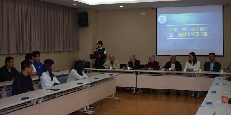 在开始的座谈会中,几位退休教师与大家分享了练习书法的经验,畅谈书法的益处,并向同学们传授学习书法的技巧。他们深入简出地道出书法与做人的道理,带给同学们丰富的人生智慧。同时,退休教师们也与大家分享了记忆中的河海,共同祝愿学校百年华诞。