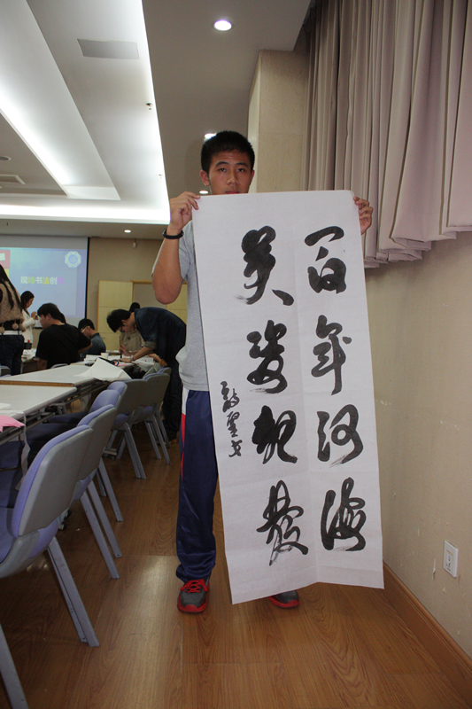在开始的座谈会中,几位退休教师与大家分享了练习书法的经验,畅谈书法的益处,并向同学们传授学习书法的技巧。他们深入简出地道出书法与做人的道理,带给同学们丰富的人生智慧。同时,退休教师们也与大家分享了记忆中的河海,共同祝愿学校百年华诞。