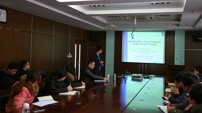 2016年1月21-23日,日本京都大学防灾所Tomohiro Yasuda博士应陶爱峰副教授邀请来成人漫开展学术交流。访问期间,Yasuda博士做了题为“Recent Storm Surge Research under Climate Change”学术报告,重点介绍了风暴潮数值模式的最新进展,分析总结了全球气候变化背景下,未来全球特别是西北太平洋气象及其影响下风暴潮演变特性,并与师生们进行了深入交流。学术报告后,参观了成人漫实验中心,蔡辉主任对实验中心及主要仪器设备进行了介绍,为后续研究合作奠定了良好基础。