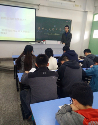 本次主题班会由两个小活动组成,首先主持人张启元同学讲述了他对于世间“美”的理解,同学们聚精会神地看着每张图片,不时发出惊叹的声音。但是这并不是本次班会的目的。随后,主持人由一个讲述宿舍关系的小短片引出世间大美是美,人际交往也是美的观点,大学生活学习只是一部分,每个人更多的时间都是与自己的舍友,同学一起度过的。同学之间互相埋怨是生活,相互欣赏也是生活。人际关系良好的话,你将度过一个充实有意义的大学生活,反之,你在走上社会之后也不会愿意去回顾一个灰暗的没有色彩的四年。这时主持人提出了两个问题“你是否经常夸赞别人”,“你是否常常获得赞美”后,同学们开始热烈的讨论。接下来就是第二个活动,每位同学拿出纸写下自己对同学的夸赞并读出来。一阵嬉笑之后,卢丽诗同学大胆的说出了对同学的认可与赞美点燃了教室的气氛,随后多位同学都说出了自己的心声,引得欢声笑语,掌声阵阵。