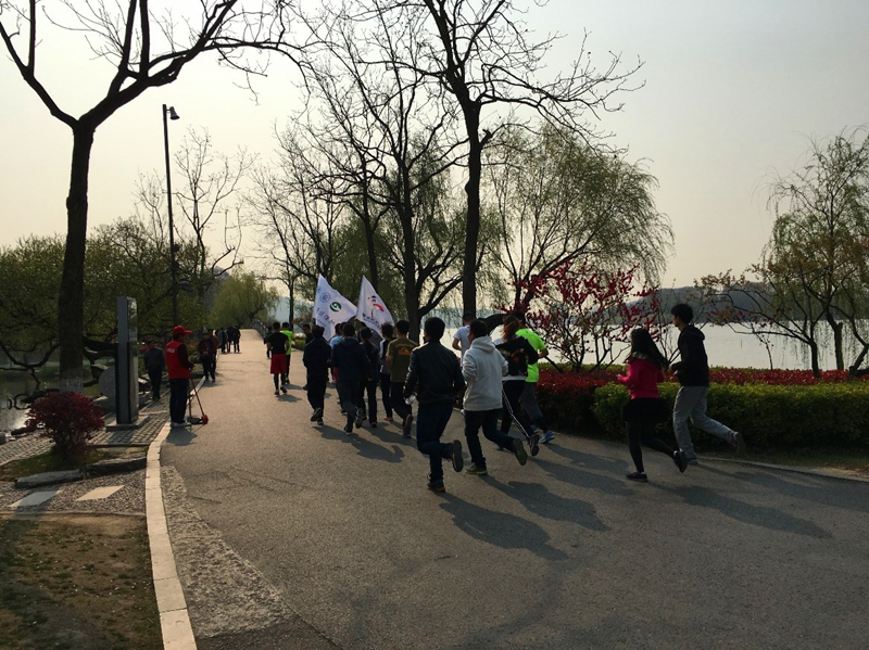 的四十余名长跑爱好者,大家都对这次活动寄予很高的期望。我们根据不同里程设置两种项目,分别为6公里和10公里的环湖长跑。上午8点半参赛人员和工作人员到达玄武湖公园,进行选手签到、合影留恋、跑前热身。8点50分长跑比赛正式开始。选手们举着宣传的旗子,在公园内跑步,向游人宣传“世界水日”“中国水周”,普及节水意识,引来的众人的瞩目。在起点处,旁边游人也饶有兴致地询问我们的活动,工作人员热情地向他们介绍活动的意义,号召大家重视节水与水资源保护。半小时后6公里环湖长跑参赛者陆续到达终点,50分钟后10公里环湖长跑参赛者也相继到达。10点最后一名参赛者安全到达终点,画上了一个圆满的句号。所有的参赛者都获得了精美的纪念品。活动结束之后,我们工作人员随机采访了几名参赛选手,他们都纷纷给予很高的评价,并希望类似的活动要继续举办下去。
