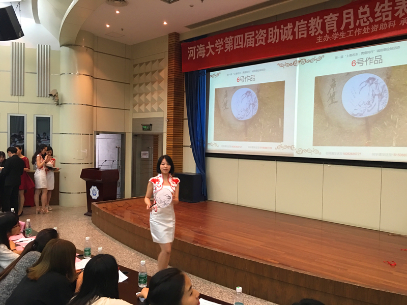 2016年6月7日中午,由成人漫 学生处主办,成人漫 承办的成人漫 第一届“上善若水,携扇同行”诚信扇绘制活动在江宁会议中心成功进行了作品展示。各成人漫 负责诚信资助的老师和同学代表出席了本次活动,积极为作品投票。