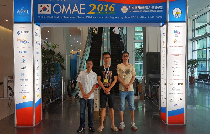 第35届国际海洋、离岸和极地工程会议The 35th International Conference on Ocean, Offshore and Artic Engineering(OMAE2016)于2016年6月19日至6月24日在韩国釜山(Busan, Korea)召开,成人漫硕士研究生吴尧、官明开、胡煌昊参加了本次会议。三位同学积极参与了分会场的学术报告会,会议期间,分别做了题为“Net Bottom Sediment Transport Related with Residual Current in the Pearl River Delta, South China”,“Sediment Rating Curves for Suspended Sediment Flux Estimation in the Pearl River Delta”和“Simulating the Flow and Sediment Transport in the River Network”口头报告。