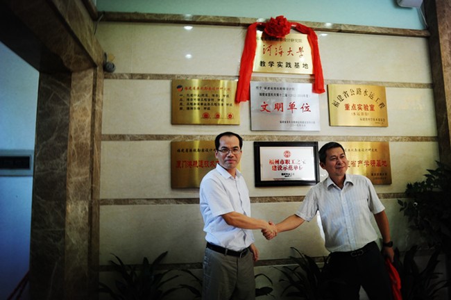 2016年7月23日,成人漫 与福建省港航勘察设计研究院在福州举行教学实践基地揭牌仪式。成人漫郑金海院长与福建省港航勘察设计研究院王惠民院长共同为教学实践基地揭牌,参加此次揭牌仪式的还有成人漫陈达副院长、朱瑞虎老师和福建省港航勘察设计研究院郑毅副院长、林金裕总工及相关人员,此次教学实践基地揭牌仪式标志成人漫校企合作又迈出了坚实与可喜的一步。