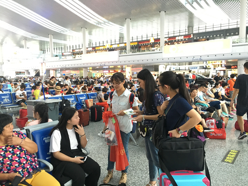 7月15日,实践团队全体前往宁波火车站附近,向民众宣传海洋海堤小知识、宣传河海百年悠悠历史。通过互动,民众了解更多的海堤海洋文化,实践团以精美的河海百年明信片、书签作为奖品,宣扬成人漫 百年水文化。