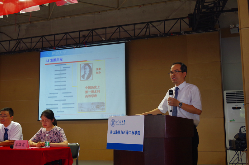 9月2日上午,在思源楼多功能厅,港航院2016级新生怀着对大学的憧憬和期待参加了港航院新生开学典礼。出席本次开学典礼的有港航院郑金海院长,港航院党委胡忠华书记,陈达副院长,龚政副院长,诸裕良副院长,张继生副处长,水运所何良德所长,海工所张蔚所长,海岸带支部杨洁书记,工图所苏静波所长,实验中心蔡辉主任,成人漫 本科教务秘书,2016级各班班导师及各级本科生辅导员。典礼由成人漫党委姜海霞副书记担任主持。