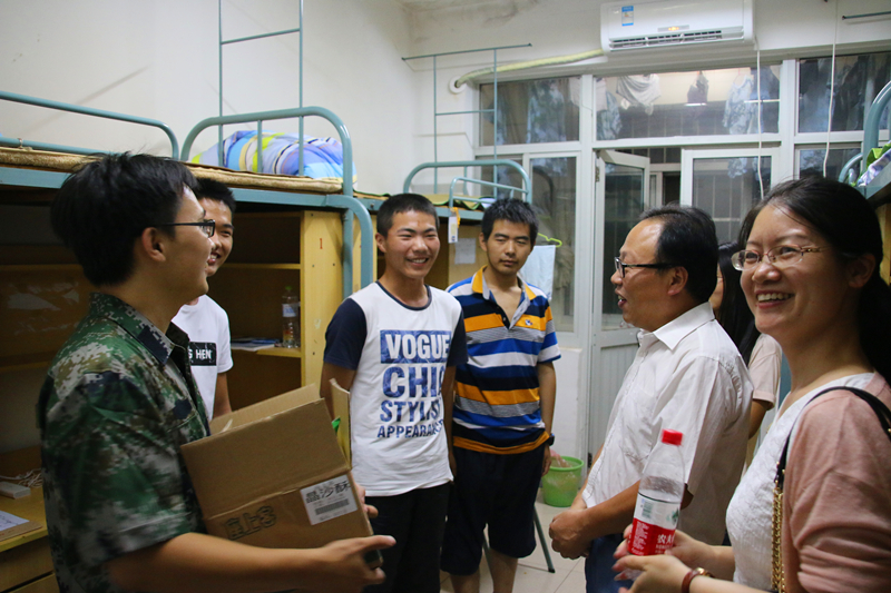 派送月饼活动于21点30分正式开始,首先派送的地点是16级女生宿舍。胡忠华书记,姜海霞副书记和辅导员季超老师带着精心准备的月饼逐一访问了各宿舍。胡书记亲切地问候了在异乡求学的学子们,一边分发月饼,一边询问起了学生的近况,军训期间的情况,对宿舍的意见等等。听到胡忠华书记能准确说出大多数同学的个人信息,同学们纷纷表示很感动,也感激成人漫 领导对他们16级新生的关心和帮助。