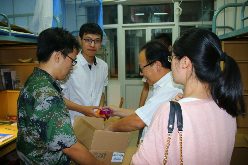 派送月饼活动于21点30分正式开始,首先派送的地点是16级女生宿舍。胡忠华书记,姜海霞副书记和辅导员季超老师带着精心准备的月饼逐一访问了各宿舍。胡书记亲切地问候了在异乡求学的学子们,一边分发月饼,一边询问起了学生的近况,军训期间的情况,对宿舍的意见等等。听到胡忠华书记能准确说出大多数同学的个人信息,同学们纷纷表示很感动,也感激成人漫 领导对他们16级新生的关心和帮助。