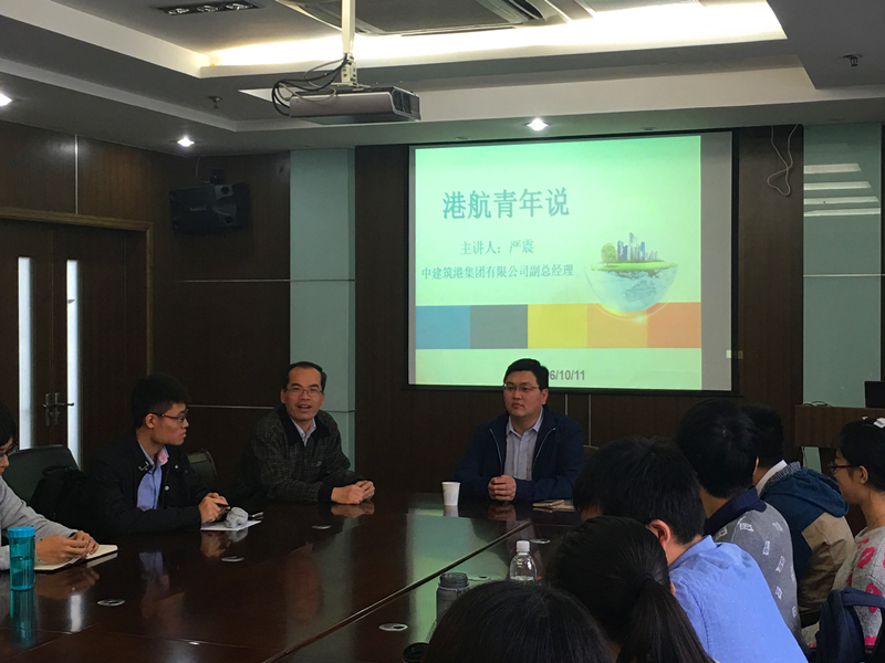 2016年10月11日下午四点,成人漫 邀请到了港航杰出校友、中建筑港集团有限公司副总经理严震做客《港航青年说》,与同学们进行了面对面的交流,郑金海院长和13级本科生辅导员王玲老师也出席了本次座谈会。本次座谈会在严恺馆502举办,座无虚席,大家交流出奇的热烈。严总结合自身工作经历讲述专业发展和职业规划,分享工作经验和人生感悟,同时解惑答疑,为同学们提供就业和发展指导。
