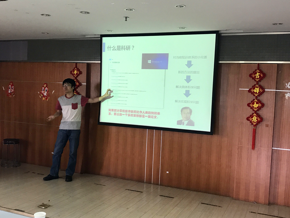 首先上场的是成人漫海岸带资源与环境研究所所长——陈永平教授,主要从事与风暴潮预警、射流以及岸滩防护方面的研究,他重点介绍了目前在研项目清单以及所在团队的培养模式,介绍了近几届毕业生的去向分布,在场同学都投来了羡慕的目光。第二位上场的是冯兴国副教授,他主要从事不锈钢钢筋混凝土结构以及高效阻锈剂方面的研究,重点讲解了不锈钢钢筋在工程中的实际运用。第三位是研究水动力和海洋防护方向的潘毅副教授,他以Win10的常规更新作为比拟,向同学们生动形象地介绍了科研的过程,从海岸工程方面的经典问题延伸到当前遇到的新问题,其幽默的演讲方式感染了在场同学。最后是海工装备与水下技术研究所所长——徐鹏飞教授,他主张“海洋是人类的战略空间”,主要从事深海结构与航行器设计的研究,和之前来宣讲的老师们研究方向有所不同,拓展到了海洋工程,给同学们耳目一新的感觉。