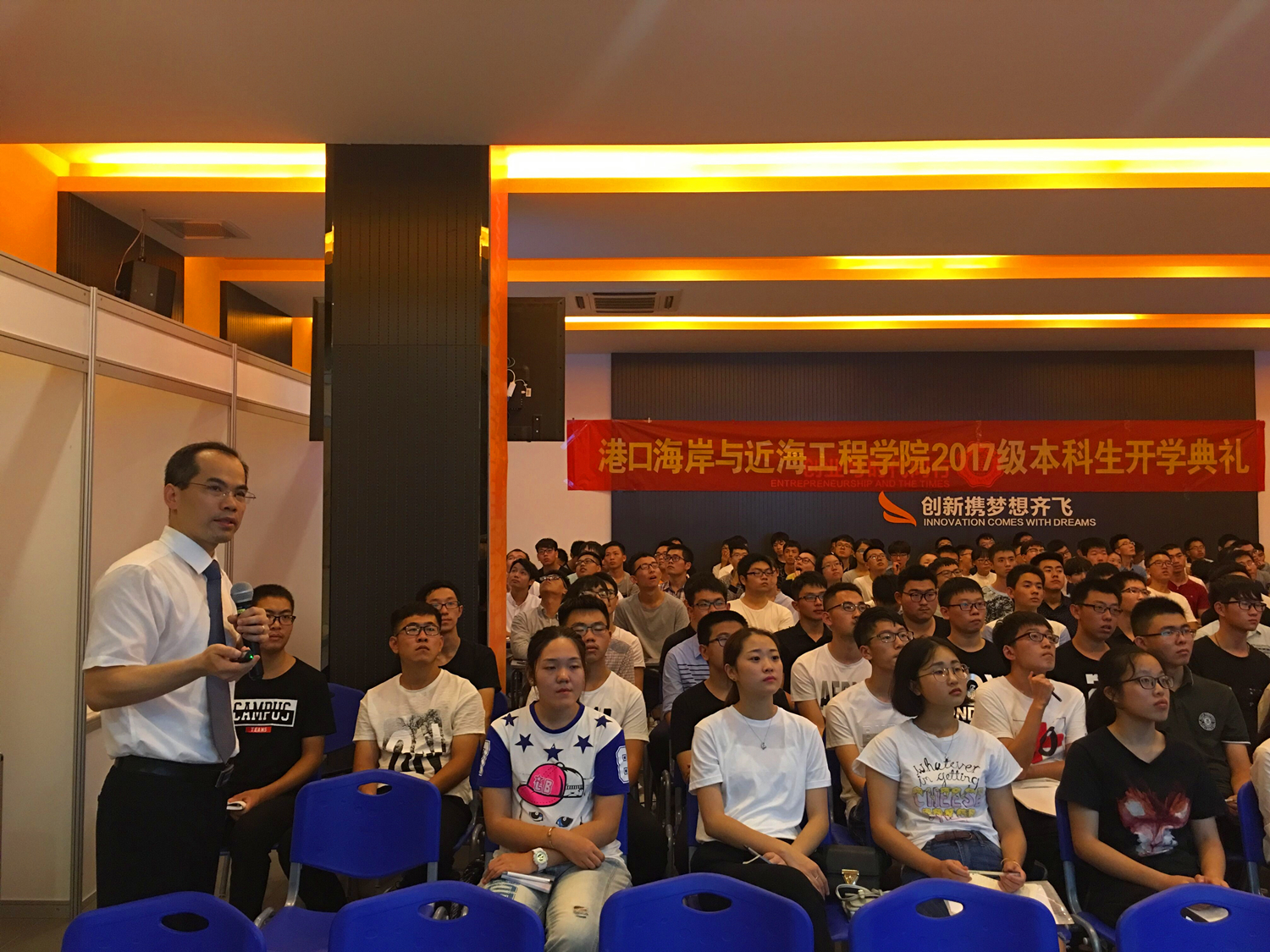 2017年9月6日下午,成人漫郑金海院长以《缘聚港航,教学相长》为题,在思源楼107会议室为港航院2017级全体新生讲授开学第一课。