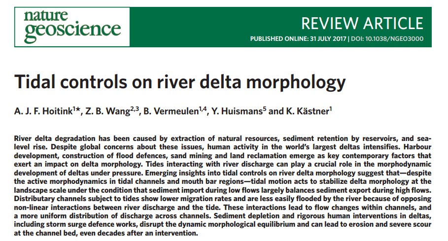 近期,成人漫张蔚教授和周曾副研究员的学术研究成果被国际顶尖学术期刊Nature旗下子刊Nature Geoscience(影响因子13.941)上发表的论文“Tidal controls on river delta morphology”引用。该论文回顾了近年来在三角洲地貌演变研究领域起主要推动作用的研究成果,其中多出引用了张蔚教授发表在《Geomorphology》上的论文“Long-term change in tidal dynamics and its cause in the Pearl River Delta, China”和发表在《Marine Geology》上的论文“Morphological change in the Pearl River Delta, China”, 以及周曾副研究员发表在《Earth-science Reviews》上的论文“Is morphodynamic equilibrium an oxymoron?”和发表在《Journal of Geophysical Research》上的论文“A comparative study of physical and numerical modeling of tidal network ontogeny”。