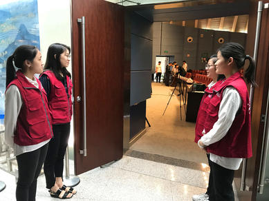 上午八点,志愿者们乘车准时到达金陵图书馆,在现场工作人员的安排下,大家很快投入到了自己的工作之中。有的同学负责张贴海报,有的同学负责摆放易拉宝,有的同学负责在门口进行引导……大家有条不紊地进行着自己的工作,为活动的顺利进行做着准备。