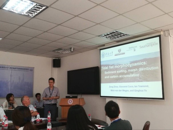 2018年6月2日至3日,华东师范大学国家河口海岸重点实验室举办“Salt Marsh Workshop”主题研讨会,会议邀请了英国南安普顿大学、南京大学、成人漫 、华东师范大学、海洋二所、上海海洋大学的业内学者30余人。成人漫周晶晶老师、王韫玮老师、周曾老师、研究生张茜、徐贝贝、戴玮琦、陈雷、朱弦、Daniel Serrano等参会,周曾副教授作了题为“Tidal flat morphodynamics: Sediment sorting, marsh distribution and carbon accumulation”的报告。