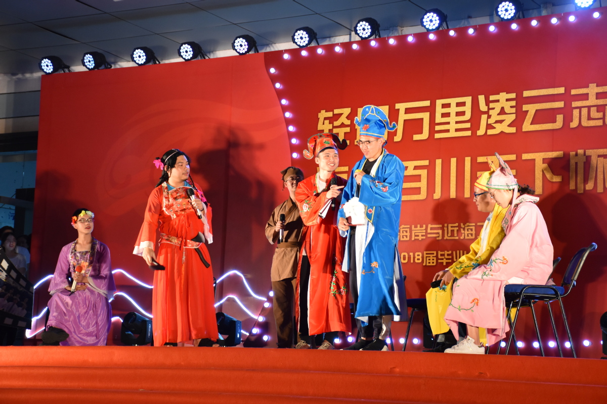 品当下风景,胸有成竹,信心百倍。屈小开等4班同学的小品《招亲大会》,语言幽默,装束怪异,引得在场人员多次的欢呼叫好。而研究生们带来的获奖啦啦操表演《Heart beat》将晚会再一次推向了高潮。辛勤的排练、优雅的动作、完美的变换不仅赢得了观众的掌声,也为成人漫 赢得了荣誉。14级港航3班带来的幕布人影戏以及1班歌曲串烧《最好的我们》《北京东路的日子》引领着同学们逐渐回忆起在成人漫 的一点一滴,令同学们感触颇深。