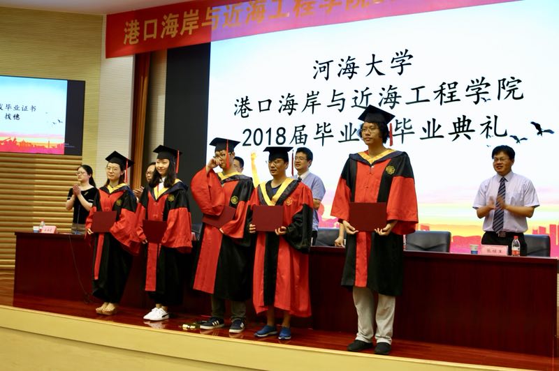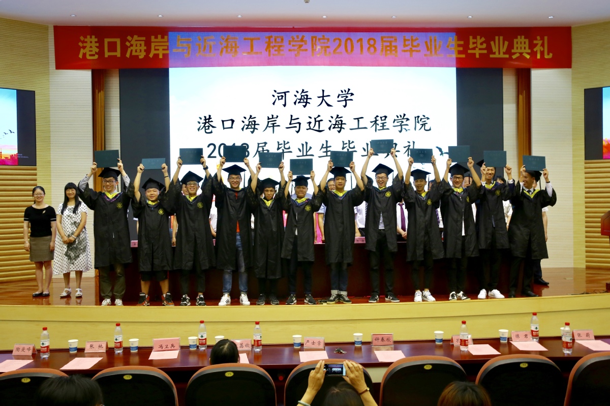 2018年6月15日上午,港航院2018届毕业生典礼在闻天馆108隆重举行,参加本次典礼的有嘉宾——长江南京航道局科技信息处林海处长,成人漫 全体领导、各系所所长、教师代表、班导师、教学秘书、各年级辅导员、2018届博士、硕士、本科毕业生以及家长代表,典礼由姜海霞副书记主持。