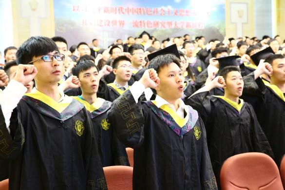 最后,全体毕业生宣誓,立志在今后的求学或者工作生涯中,勤勤恳恳,兢兢业业,争取做一名合格的港航人。