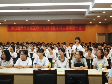 开学典礼后,龚政院长给港航院2018级全体新生讲授开学第一课。龚院长从学校悠久的历史讲述到学院光辉的历程,结合时代背景和国家战略,谈港航专业的内涵和发展,他用“舟楫之便,向海而兴”八个字强调了港航专业的意义与优势所在,他指出,无论国内还是国外,在很多重点水利工程的设计和建设中都能看到港航人的身影,同学们应以此为傲,也应为此而奋斗努力。同时,龚院长从新生的视角,深入浅出地引导新生结合专业尽早确立目标、规划大学生活,书写自己无悔的青春。新生对开学第一课兴趣浓厚,现场提出很多问题,龚院长一一答疑解惑。