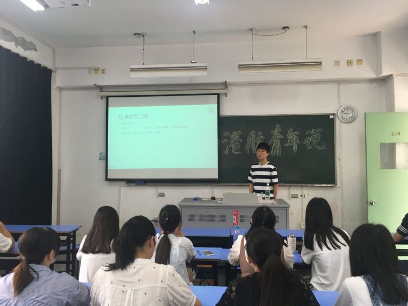 首先进行交流的是港航院2018级专硕一班的林晨同学。林晨同学从“法国文化”、“法国旅游”、“法国教育”三个方面逐渐过渡四个赴法项目的简要介绍。随后,港航院2018级专硕二班的张哲瑜同学以法国杜埃矿业成人漫 工程师项目为例通过时间轴向同学们详细地介绍了赴法项目从学校正式发文、校内外的选拔到赴法学习实习需要注意的事情和应提前做好的准备。