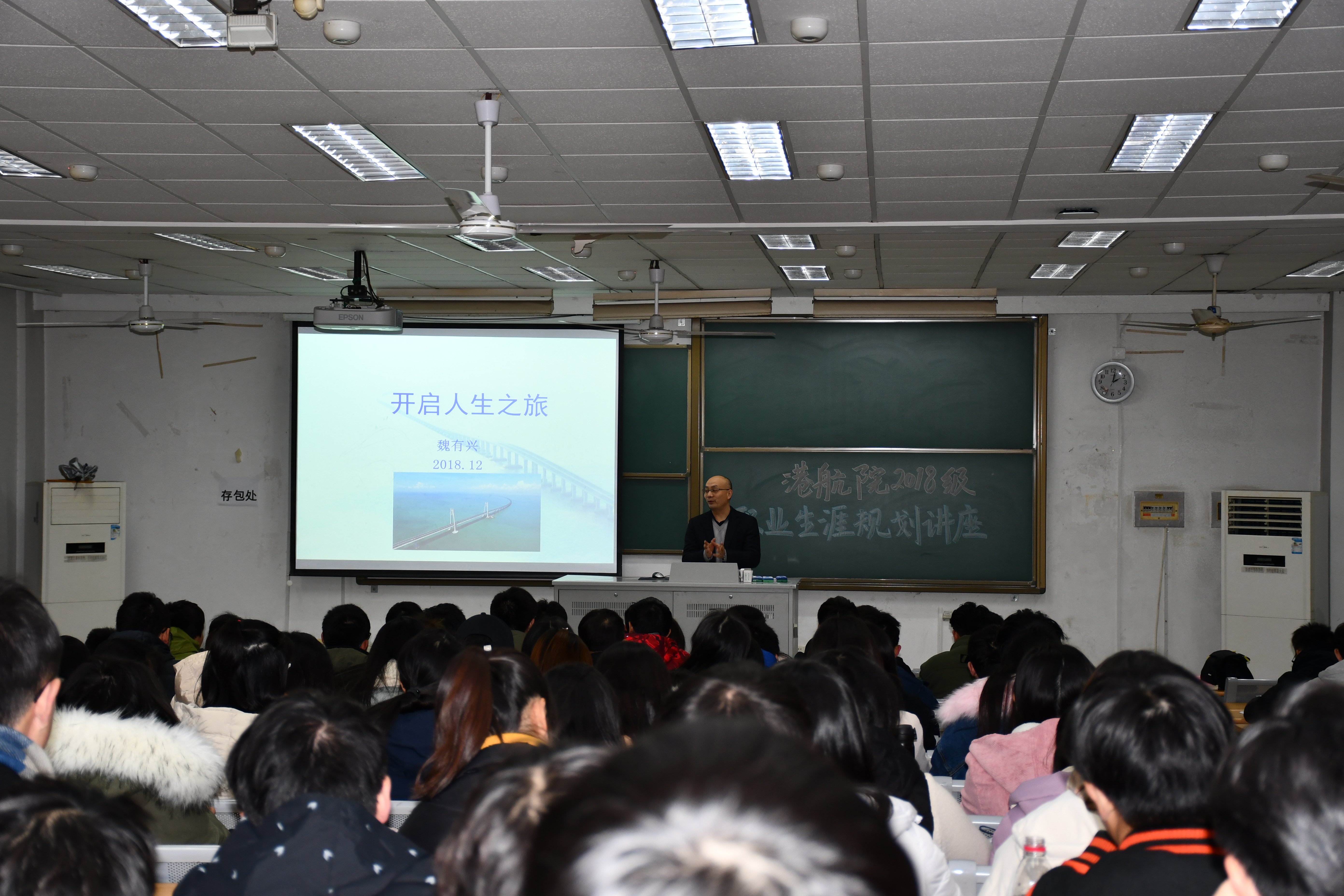 理学院党委魏有兴书记为港航院2018级本科生带来了一场职业生涯规划讲座。港航院党委姜海霞副书记出席讲座。