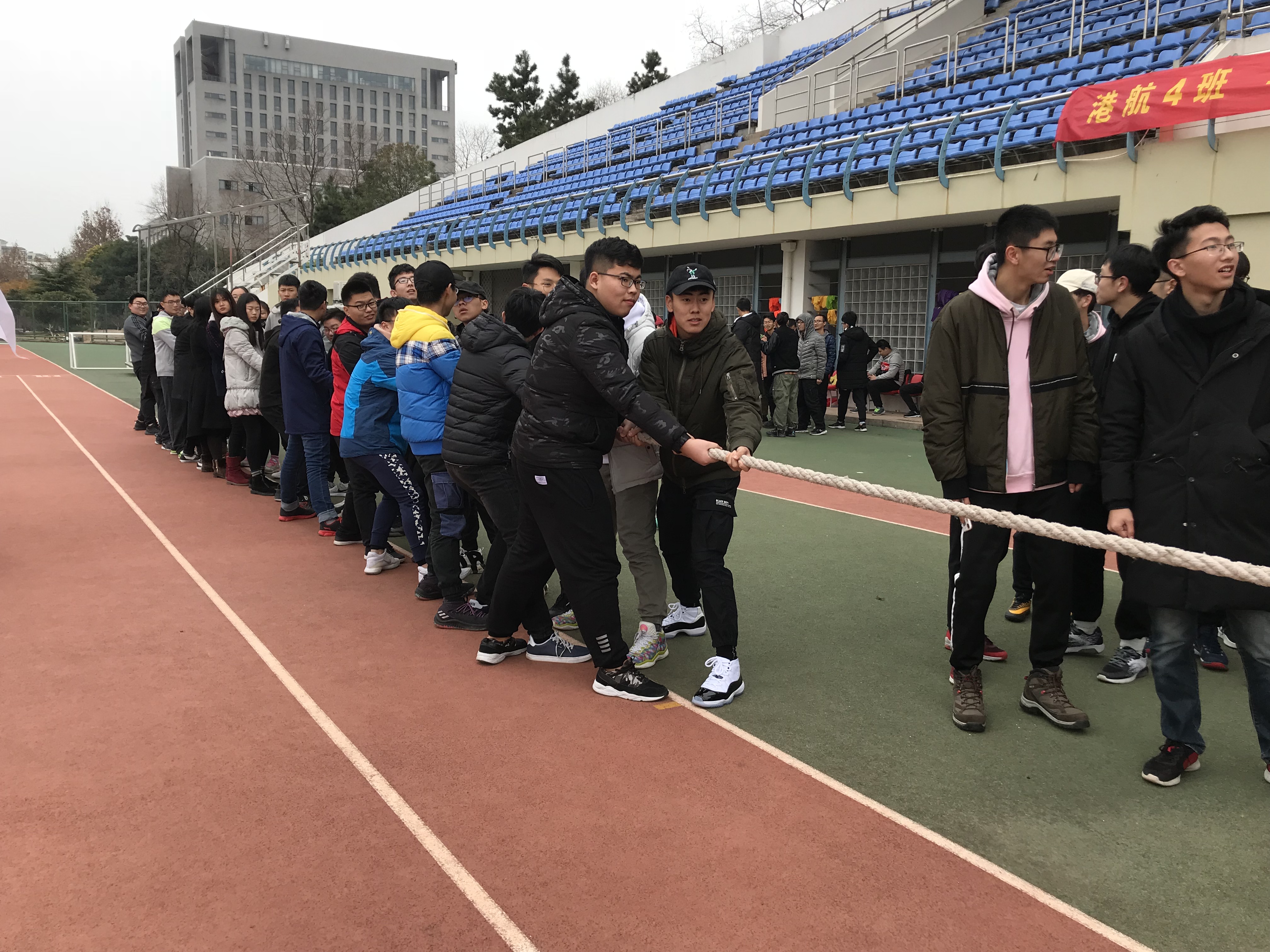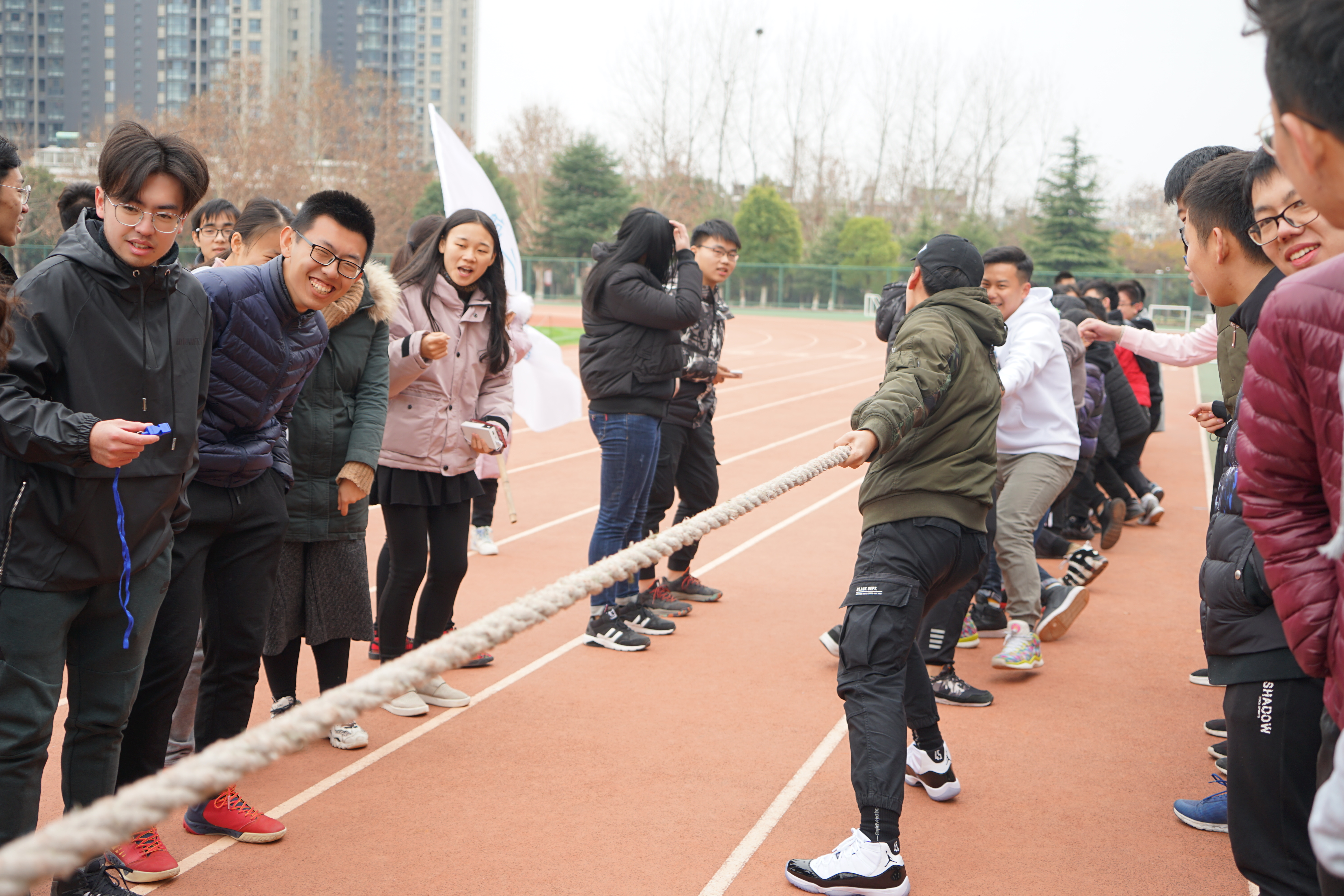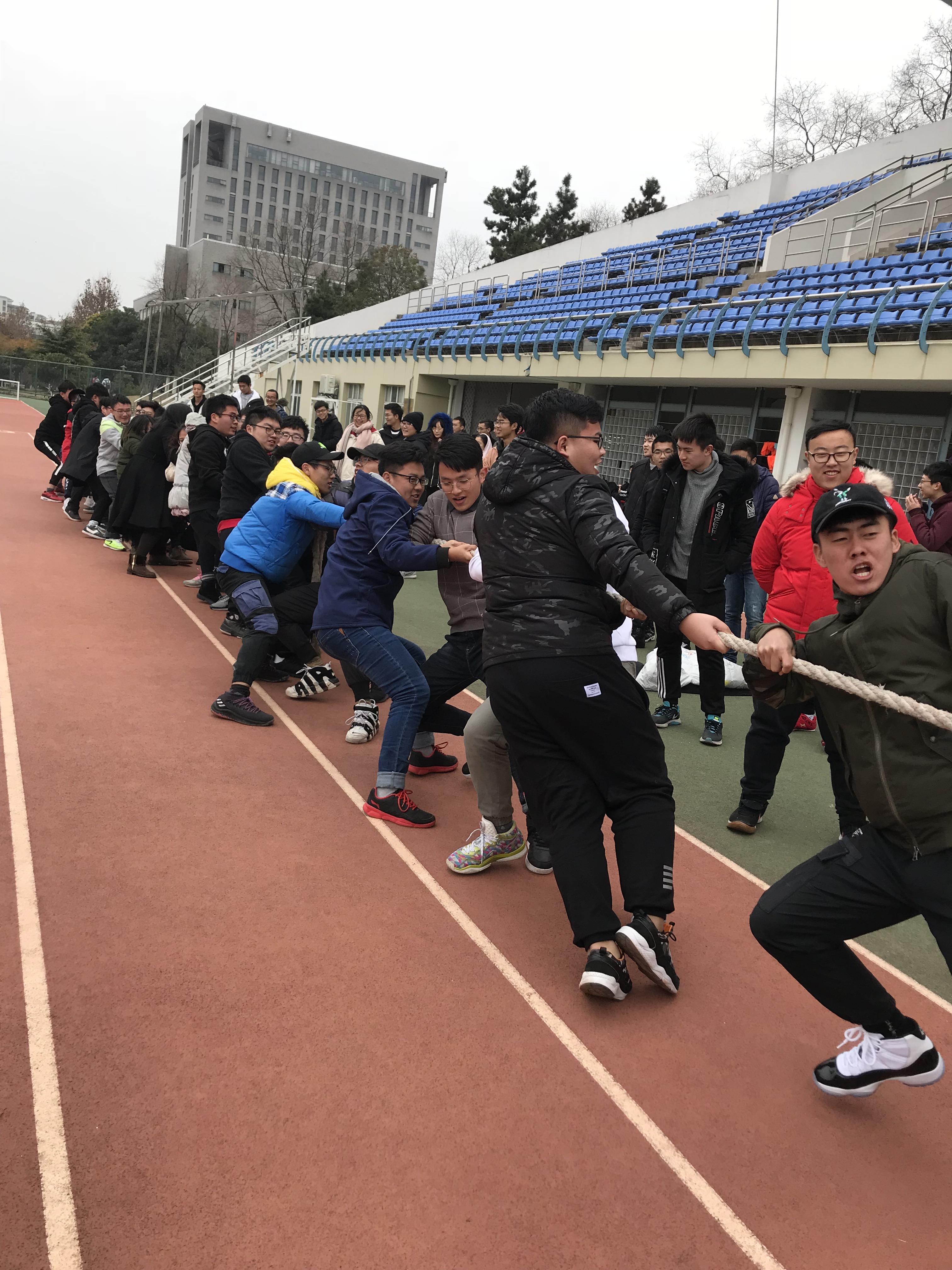 12月14日中午,2017级全体本科生齐聚学校东操,进行了一场拔河友谊赛。