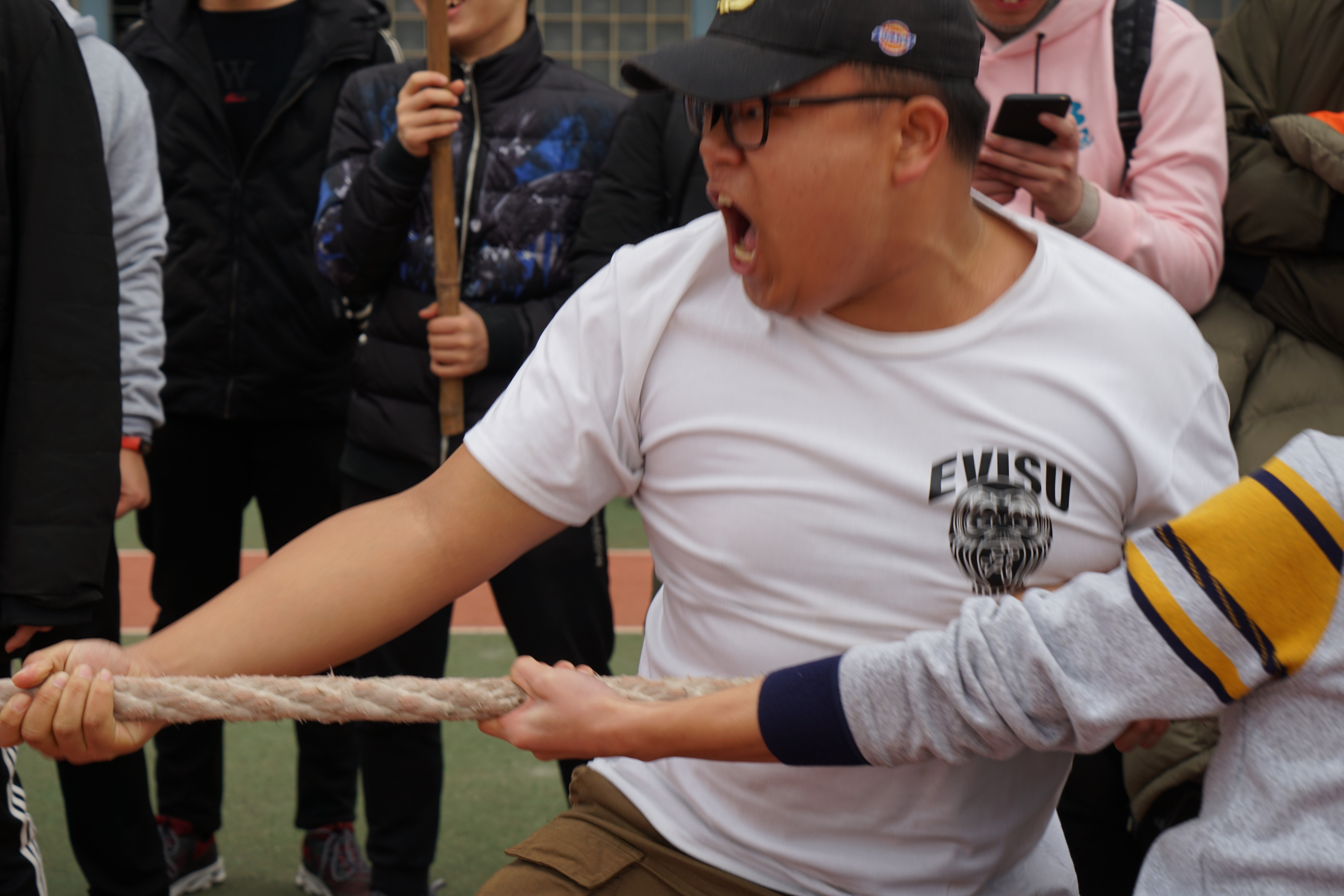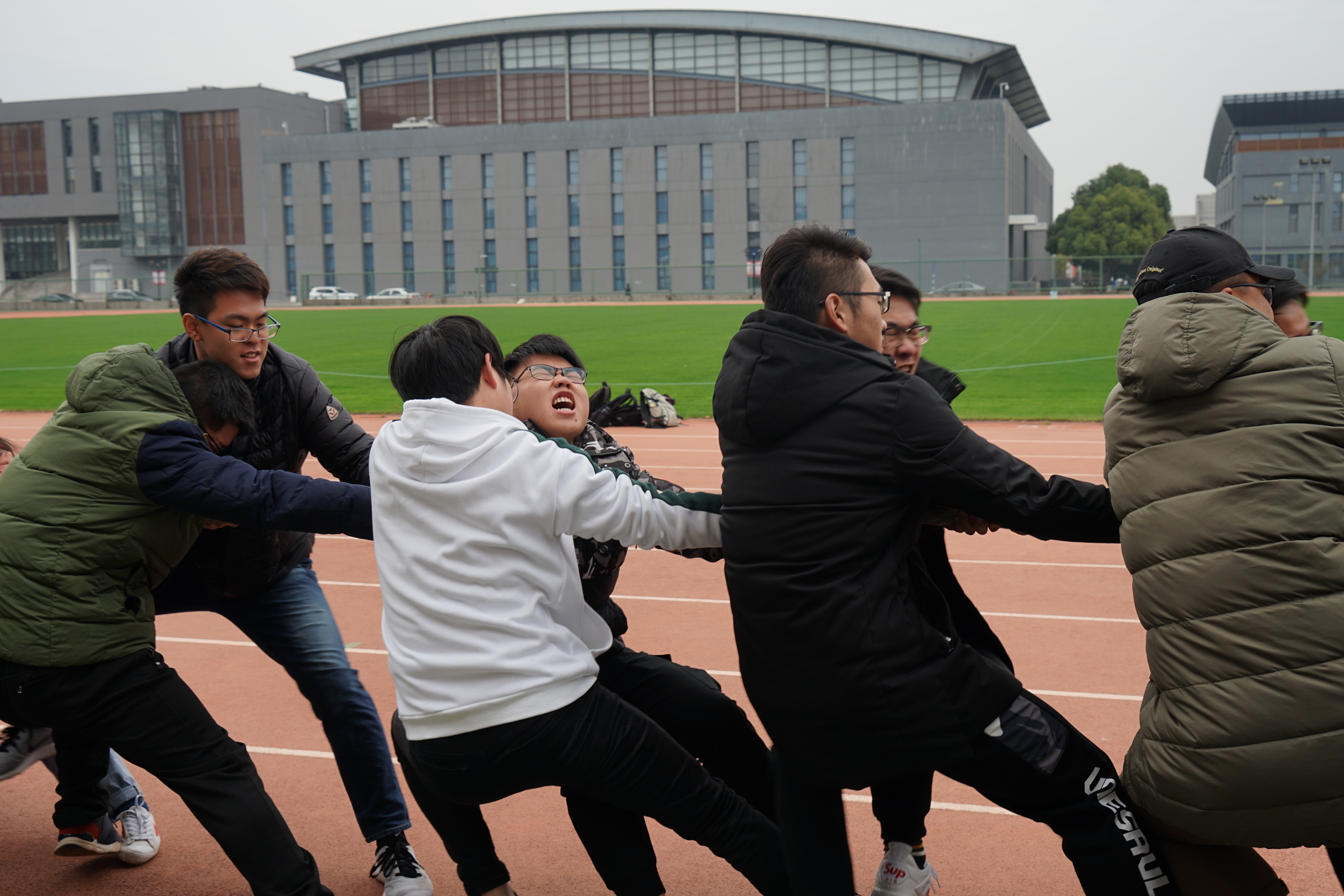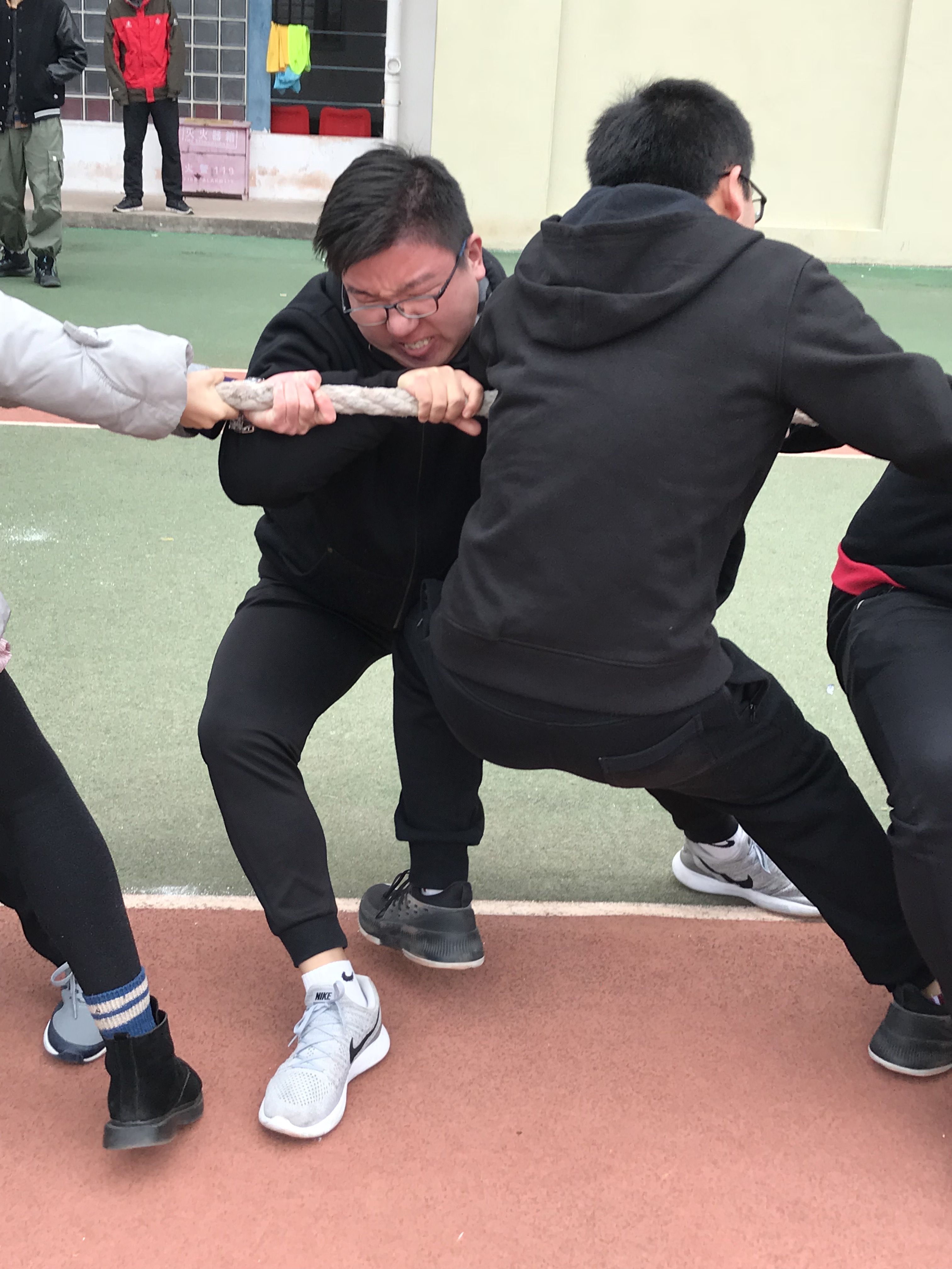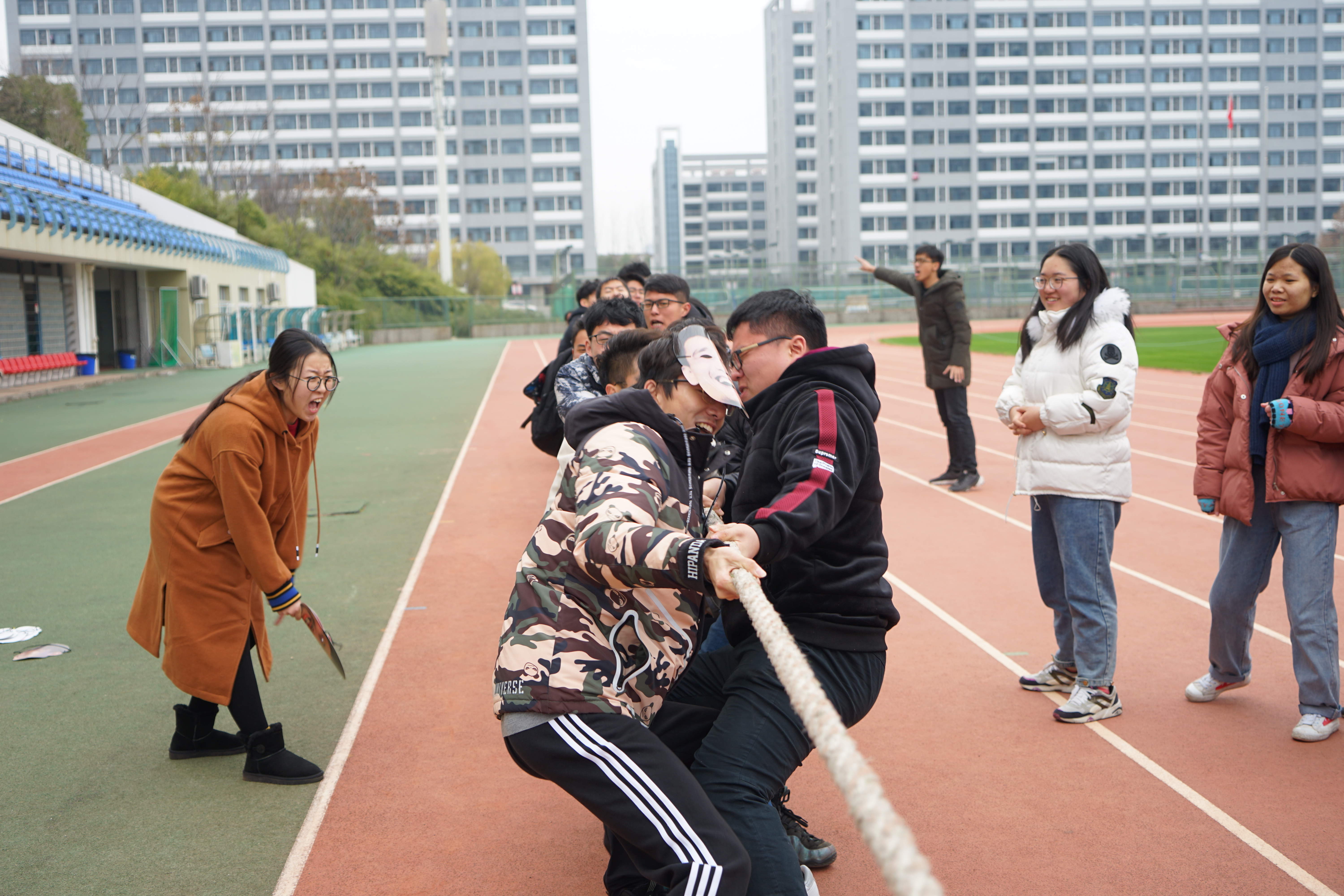 12月14日中午,2017级全体本科生齐聚学校东操,进行了一场拔河友谊赛。