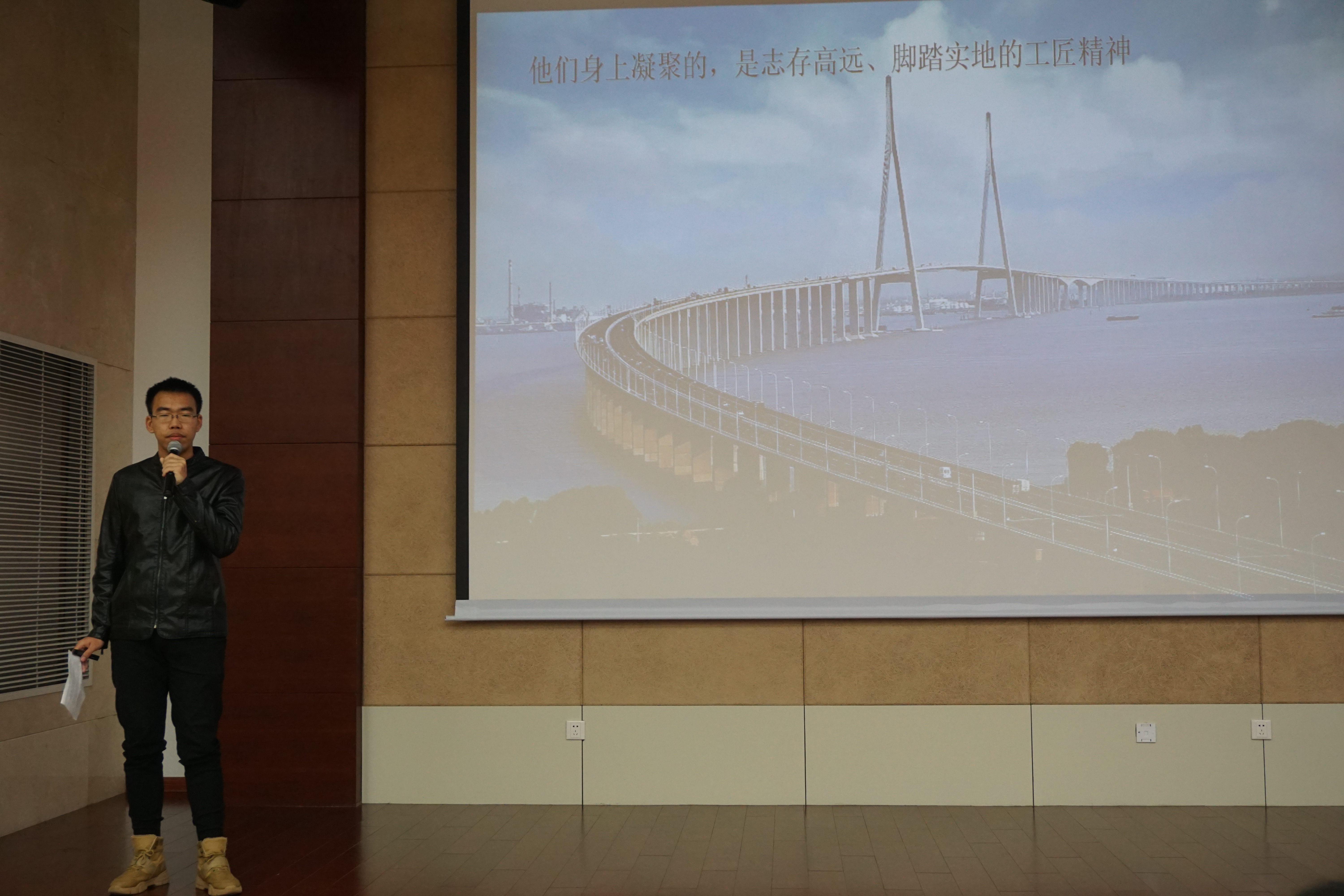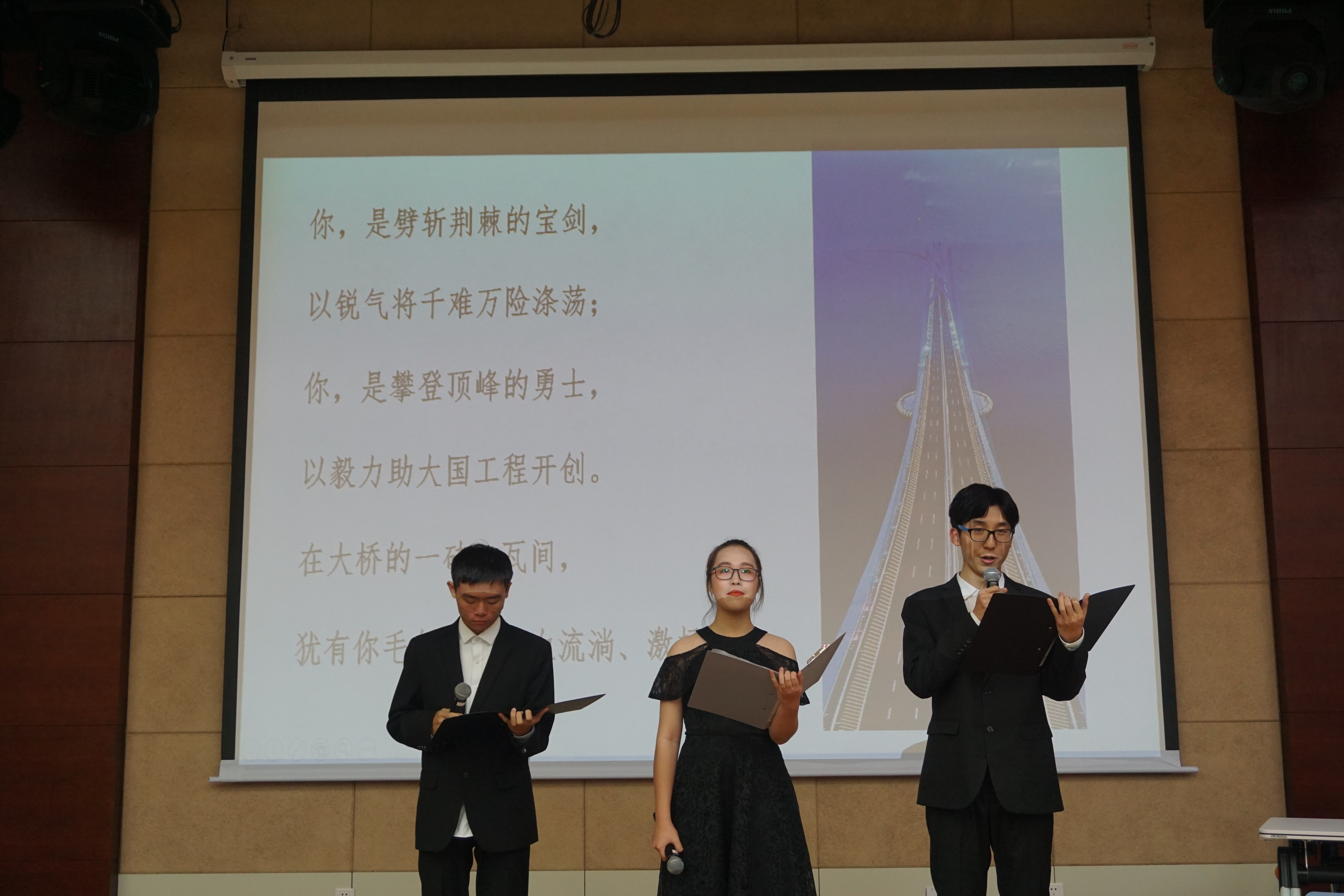 12月21日晚六点半,由学院党委主办的“敬大国工匠,讲爱国故事”主题活动在江宁校区行政楼一楼报告厅举行。此次活动邀请到党委宣传部王宁可老师、校团委陈智老师以及学院团委书记王玲老师担任评委,参赛选手们通过对河海校友参与港珠澳大桥建设的真实事迹进行改编,向大家展示了奋战港珠澳大桥建设前线的大国工匠们的奋斗精神与爱国情怀。