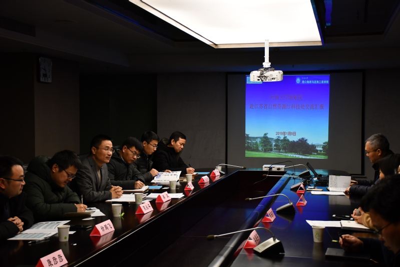 为进一步提升成人漫服务江苏省沿海开发与保护科技服务能力,更好地为江苏省海洋资源开发与保护提供科技服务,发挥优势,整合资源,协同发展,2019年1月9日上午,龚政院长带队赴江苏省自然资源厅科技处访问交流。
