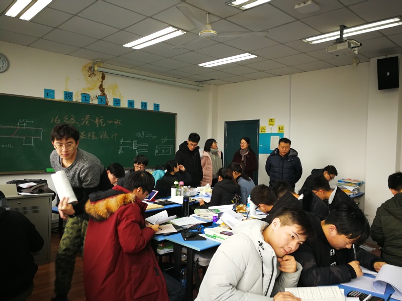 1月14日上午,姜海霞副书记、张蔚副院长携同15、16级辅导员和本科生教学秘书走访了大三、大四学生钢筋混凝土结构和水运工程施工的课程设计教室。张蔚副院长认真听取了同学们对课程设计和考试安排的想法和建议。姜海霞副书记亲切地询问同学们学习和生活中遇到的问题,并表达了新的一年对同学们的期许。