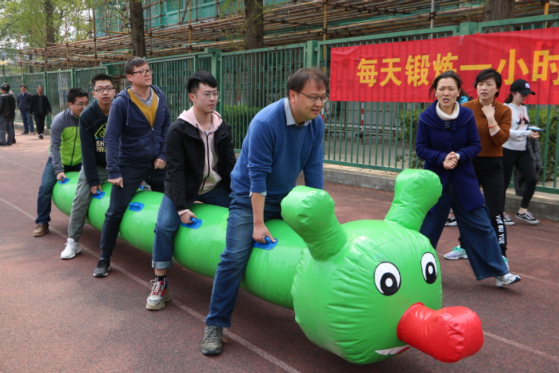 最为激烈的毛毛虫项目,在规律的口号声和观众的加油喝彩声中进行,团队成员使出浑身解数,用各种姿势加快“毛毛虫”的行进。通过协作与团队凝聚力,冲向终点。现场观众笑得前仰后合,场景好不热闹。