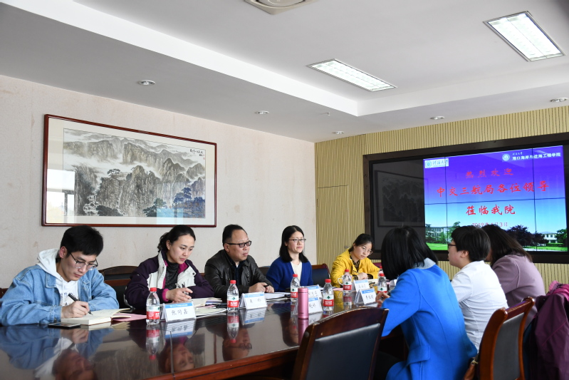 2019年4月3日下午,中交第三航务工程局有限公司人力资源部高级主管费佳颖、第三工程有限公司人力资源部经理梁艳娇、副经理王珍一行3人到成人漫开展调研,双方就校企合作、校园招聘、人才培养等方面的工作进行座谈交流。成人漫 胡忠华书记、姜海霞副书记、王玲老师、季超老师、顾钰恒老师、张同鑫老师参加了座谈。
