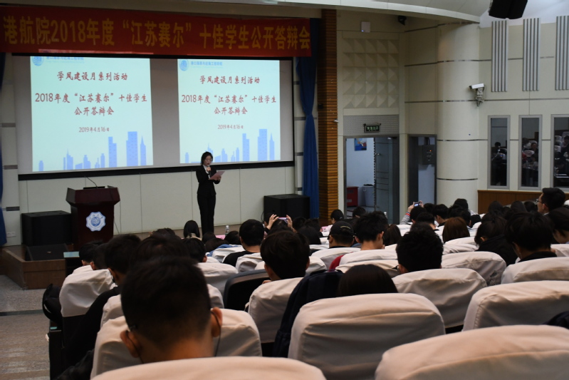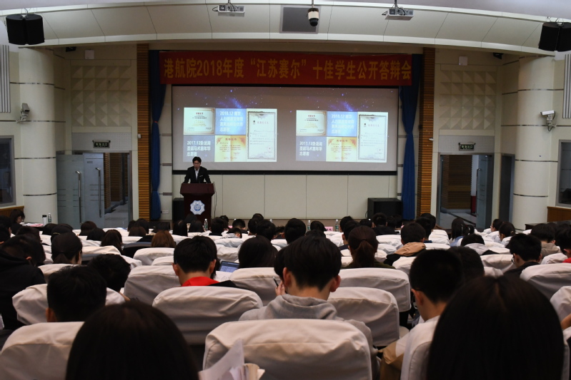 2019年4月16日18:30,港航院2018年度“江苏赛尔”十佳学生公开答辩会在江宁会议中心举行。本次公开答辩会邀请到了陈智、周春艳、李昂、王玲、季超、张同鑫、顾钰恒等六位评委,为港航院塑造“比、学、赶、帮、超”的良好学风。