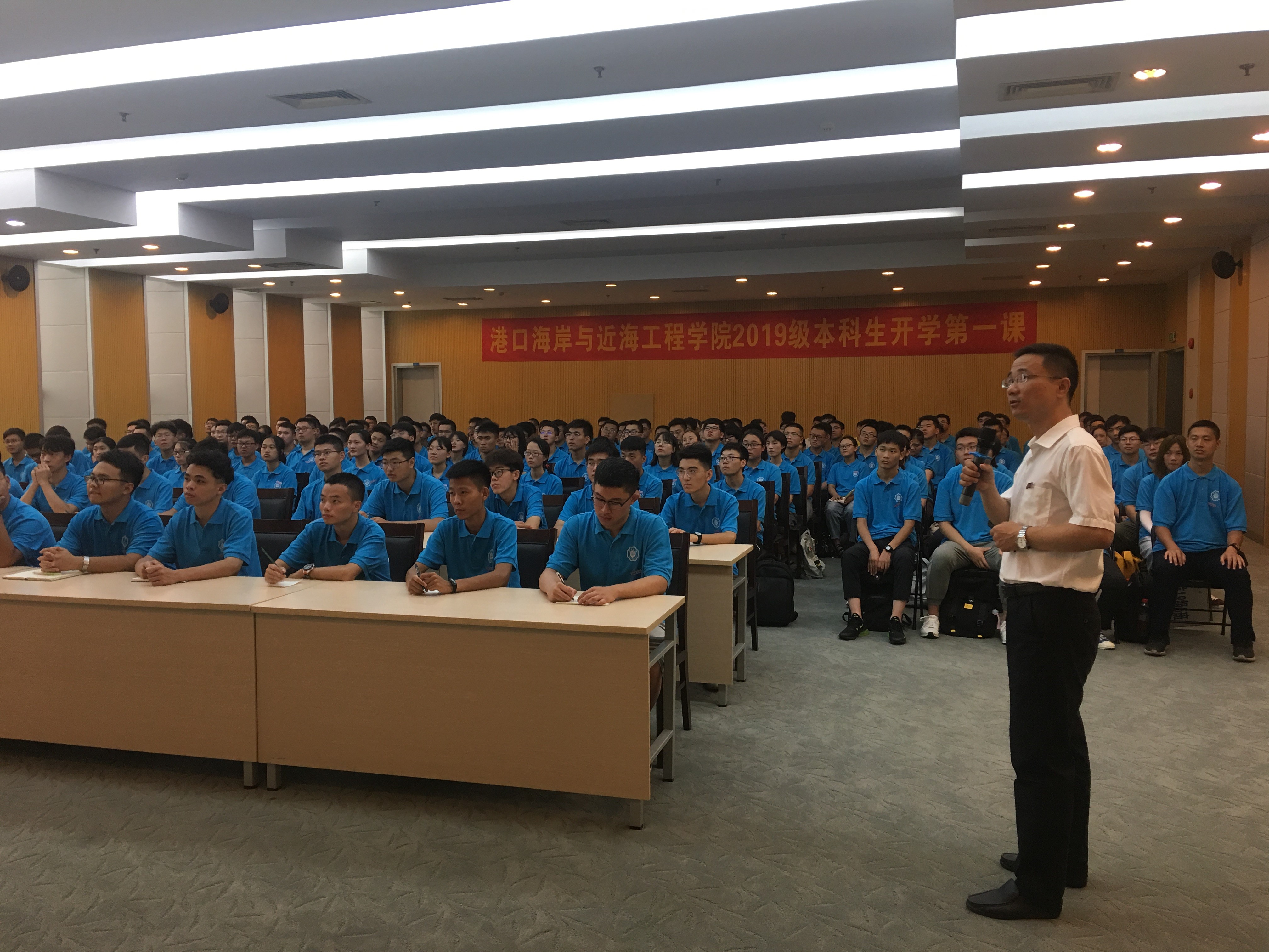 典礼结束后,龚政院长以“港航海资,携手前行”为主题给2019级本科新生讲授开学第一课。他以“河海”、“水利”、“港航”、“海资”四个关键词为引言,从发展历程、发展现状和卓越贡献三方面简略介绍了成人漫 ,从发展历程、师资队伍、学科专业和教学教育四个方面介绍了成人漫 ,并以港口工程、航道工程和海岸工程三个板块阐述了港口航道与海岸工程和海洋资源开发技术两个专业的精髓所在,同时他用“舟楫之便,向海而兴”八个字强调了两个专业的意义与优势所在。在龚政院长细致的介绍下,新生们初步了解了港航院的发展历史和专业发展趋势,并就军港建设和科研两个方面提出了疑问,龚院长为此一一解答。
