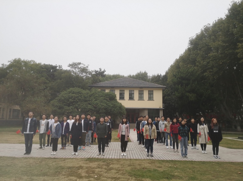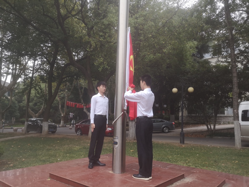 2019年10月8日早上7点20分,成人漫 成人漫 2017级港航2班全体成员在本部工程馆前举行升旗仪式。