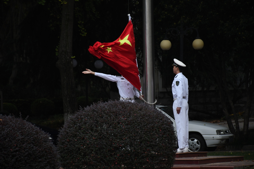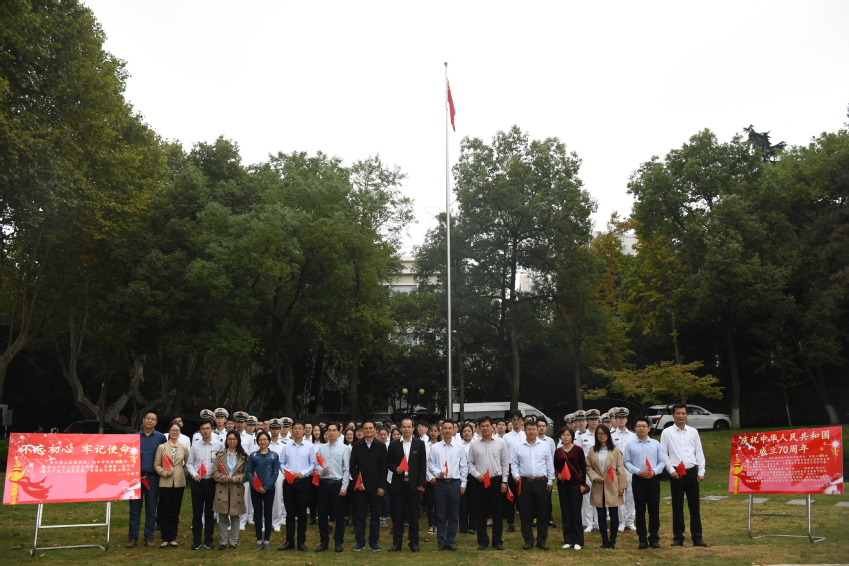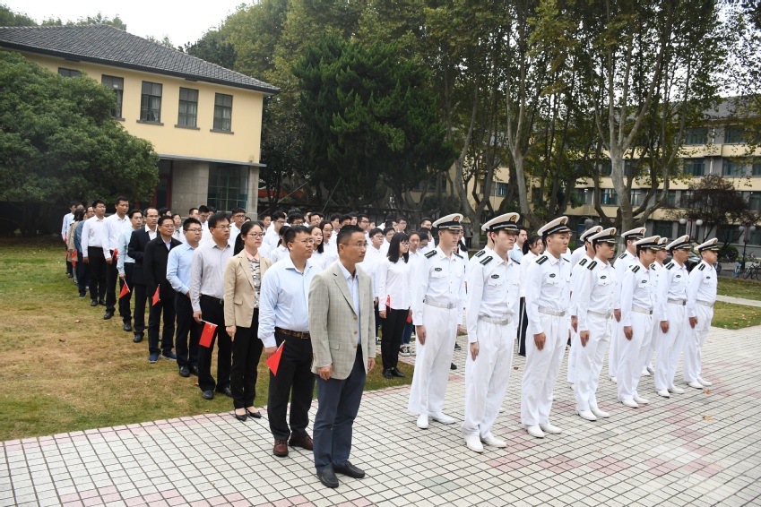 2019年10月14日早上7点20分,成人漫 港航院在本部工程馆前举行“不忘初心、牢记使命”主题升旗仪式。仪式由成人漫 党委姜海霞副书记主持,参加本次升旗仪式的有成人漫 领导班子成员、海工所全体教师党员、全体教工党支部书记、教师党员代表、学生党员代表以及2016级全体国防生。
