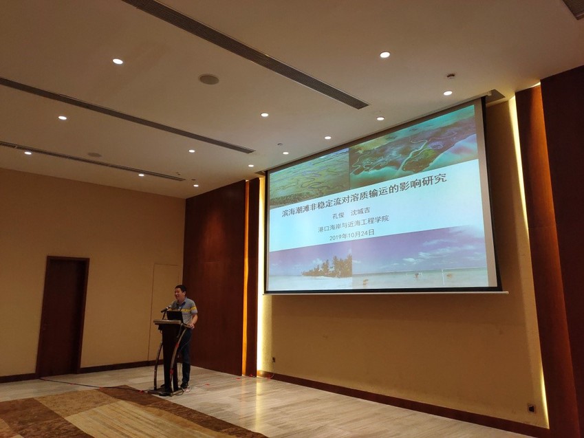 2019年10月26日至27日, 中国海洋学会成立40周年暨2019海洋学术(国际)国际双年会在三亚顺利召开。成人漫郑金海教授、孔俊教授、陶爱峰教授、谭慧明副教授和徐伟硕士参加了本次会议。郑金海教授作为第六分会场“海岸带生态减灾交流研讨会”特邀嘉宾做了“基于自然的海岸防护理念与方法”的报告,孔俊教授做了“滨海潮滩非稳定流对溶质输运的影响研究”的报告,与来自全国各沿海省、市的专家学者进行了深入交流和探讨。